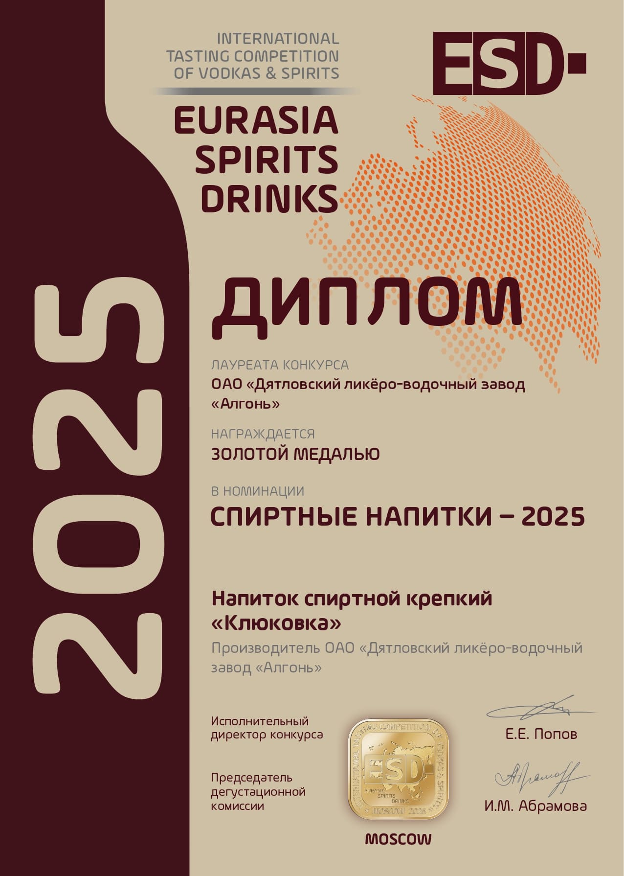 12.02.2025 завершился международный дегустационный конкурс Eurasia Spirits Drinks. Из заявленных нашим предприятием 10 позиций, 8 взяли золотые медали. Благодарим наших потребителей, членов дегустационной комиссии и организаторов конкурса за такую высокую оценку нашей продукции!